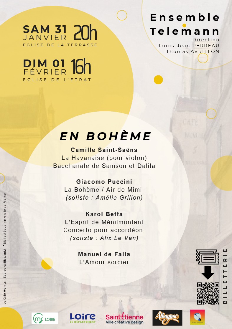 Nous jouerons lors des concerts d’hiver le samedi 31 janvier (Église de la Terrasse, Saint-Étienne, 20h) et le dimanche 1er février (Église de l’Etrat, 16h):